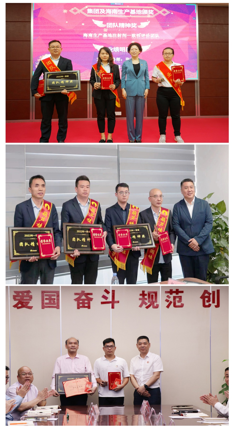 为了表彰在2022年一季度“深化变革,赢得开门红”工作中“超额完成计划、超出本职工作或超越组织预期”的先进集体和优秀个人,会议期间还举行了NG28药业集团2022年一季度“开门红”表彰颁奖仪式。营销中心葫芦世家事业部湖南区域主管黄子杰等12人荣获业绩明星奖,葫芦世家事业部等5个集体荣获团队精神奖。